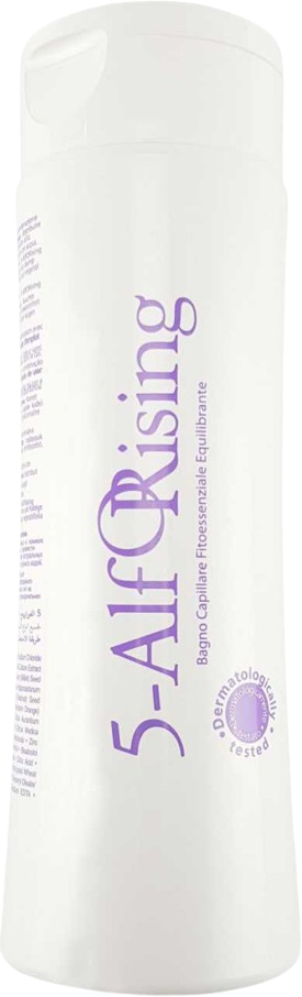 Фітоесенціальний шампунь 5-AlfORising не містить Sodium Laureth Sulfate та очищує волосся за допомогою делікатних поверхнево-активних речовин, що зберігають гідроліпідний баланс шкіри голови.